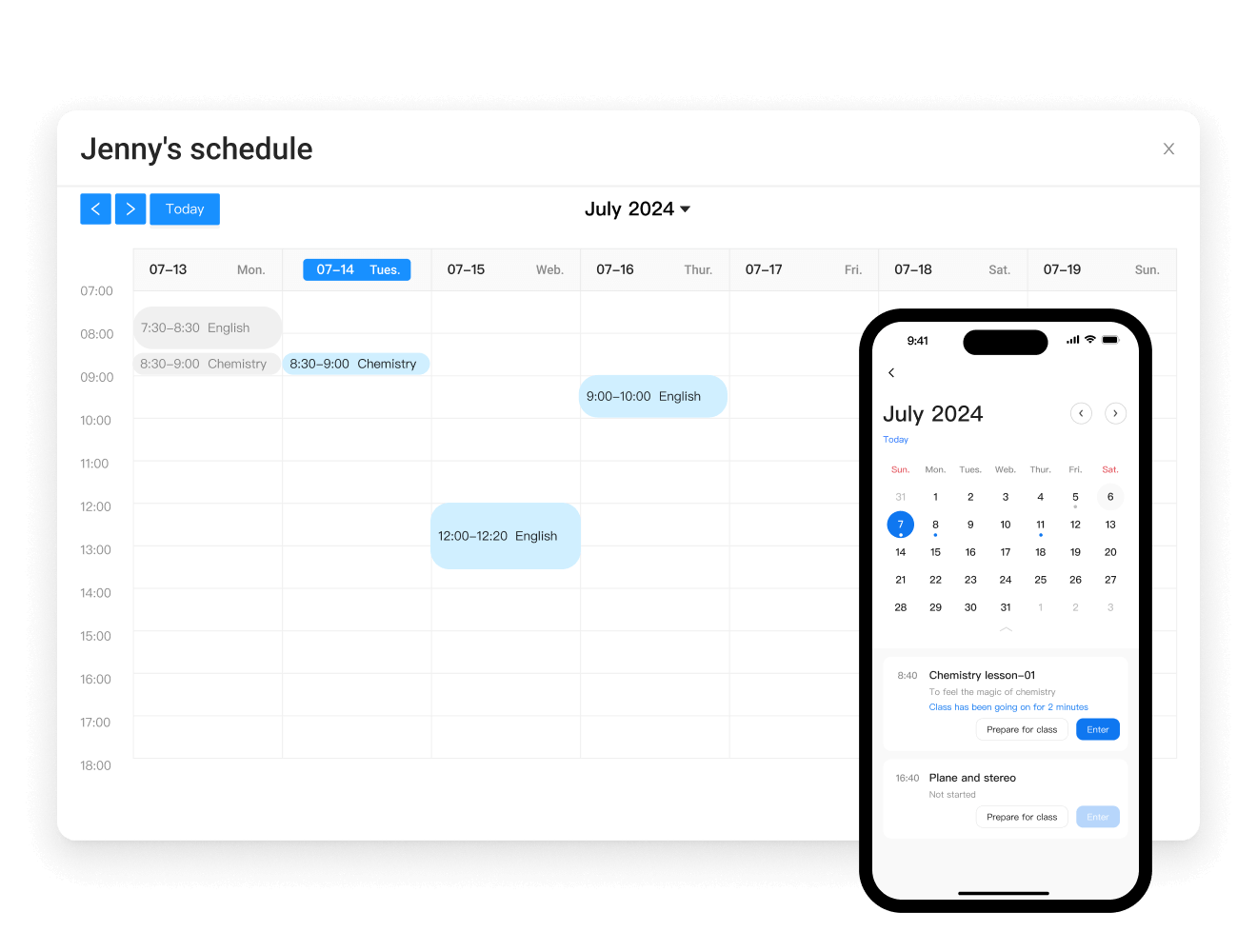 排课业务是⽐较复杂的业务环节,需要充分考虑师资以及已排课的时间是否存 在冲突等问题。⽹校系统可以⾃动对这些条件进⾏过滤和筛选,避免课程冲 突。⽤户可以创建单课节的课程也可以创建多课节的课程,排课成功之后⽼师 和学⽣可以在⾃⼰的排课⽇历上看到对应的课程,并⼀键进⼊教室上课。