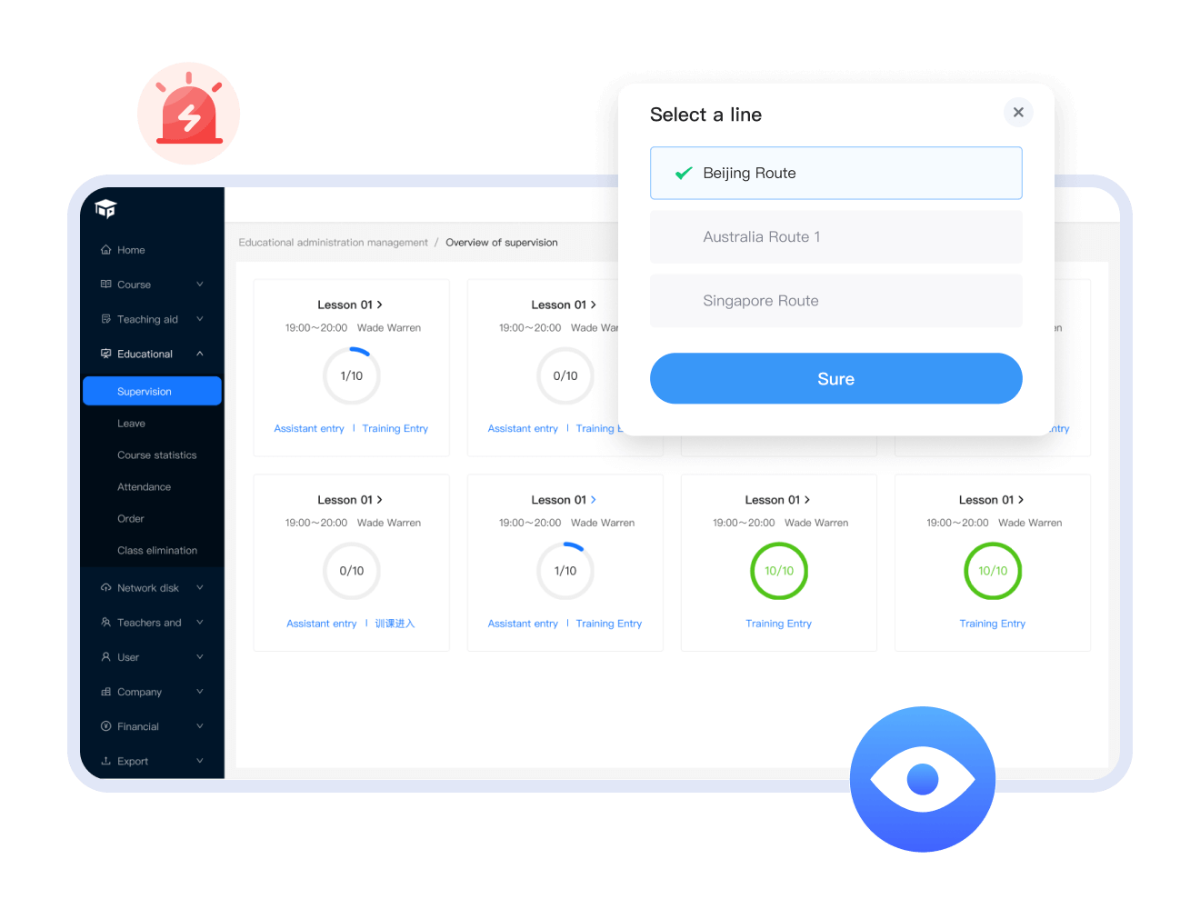 考勤统计、监课数据、课堂报告、财务数据等多维度数据统计,提高运营效率